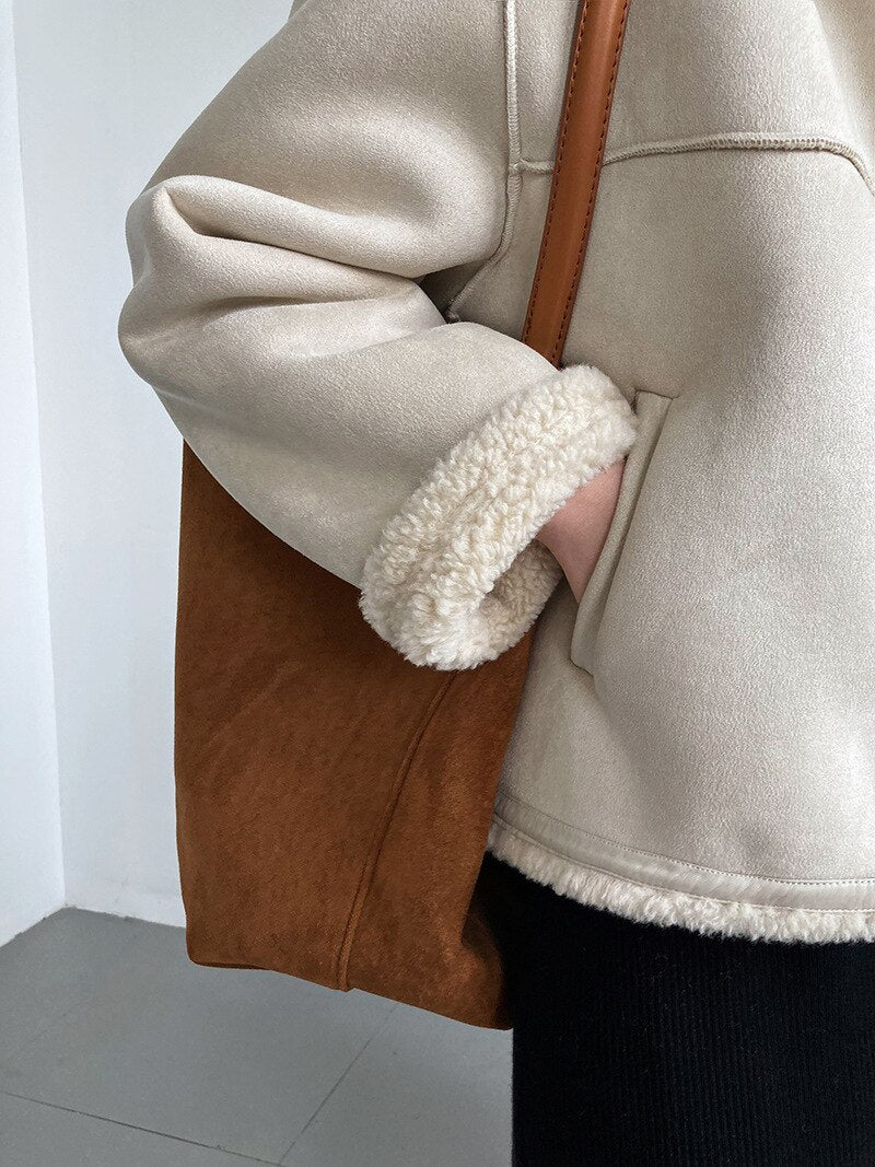 Disponible en deux couleurs classiques, cette veste s’adapte à toutes les occasions et garde un style impeccable en toutes circonstances. La finition sherpa aux poignets et à l’ourlet ajoute non seulement du confort, mais aussi une esthétique chaleureuse et tendance. C’est une pièce facile à combiner, idéale pour vos journées en ville comme pour vos escapades en plein air.