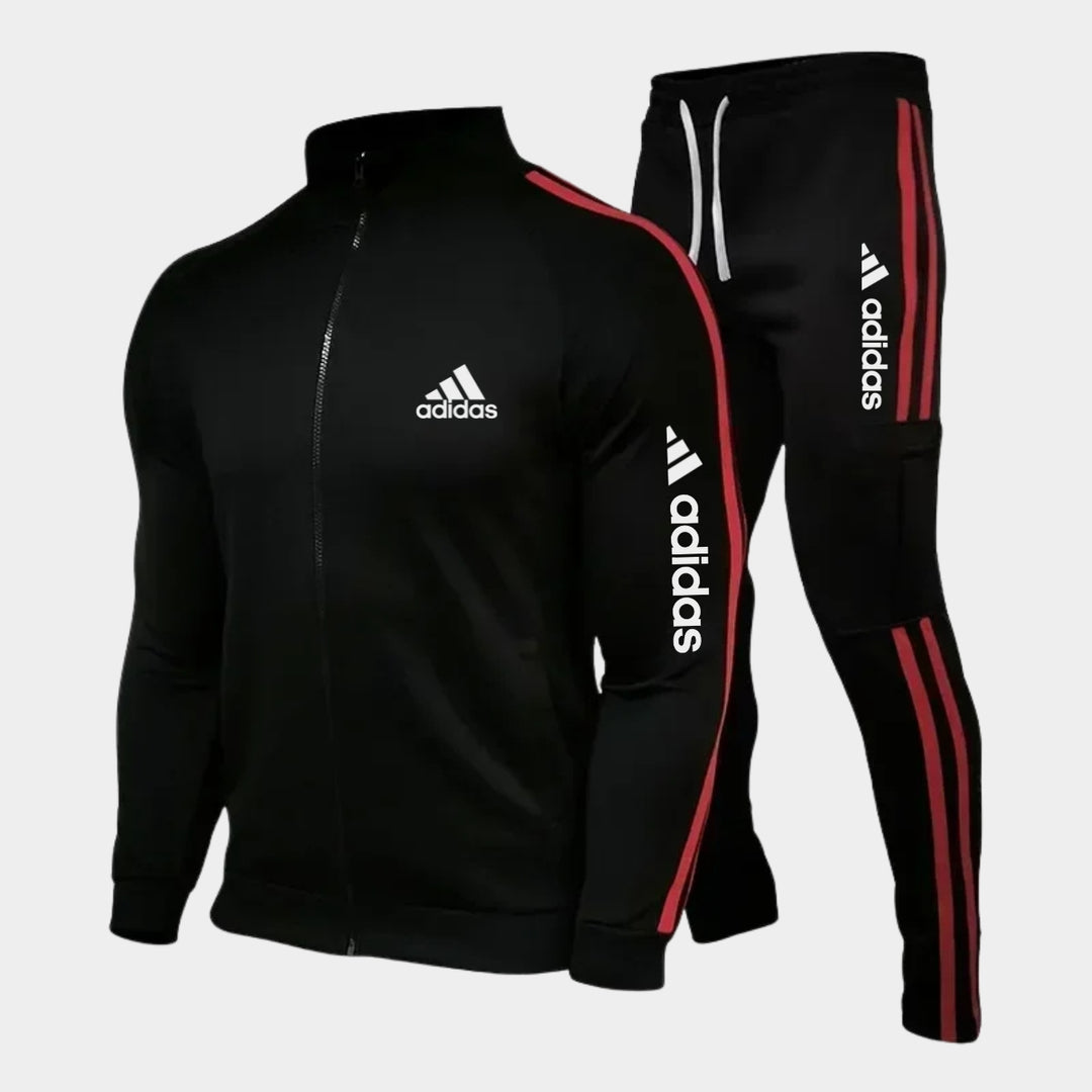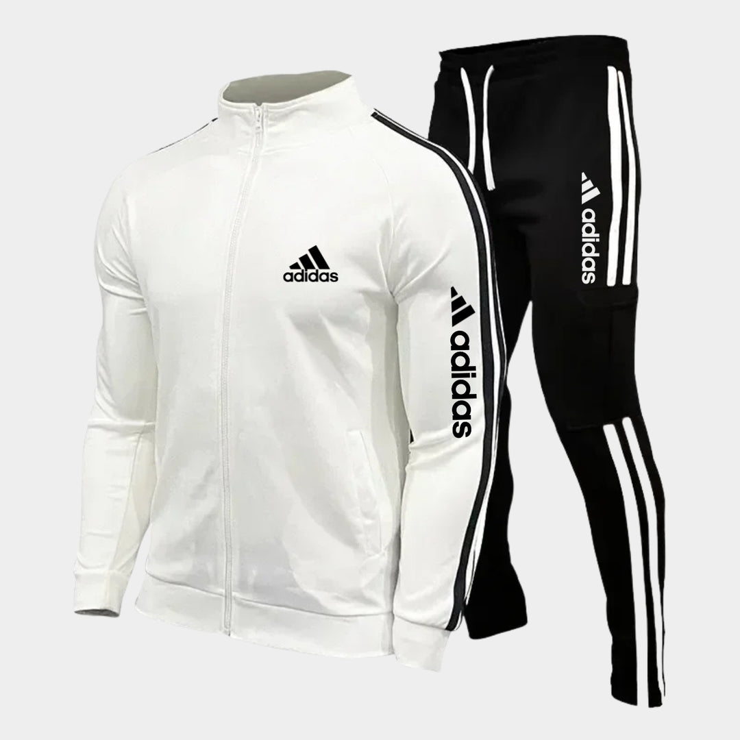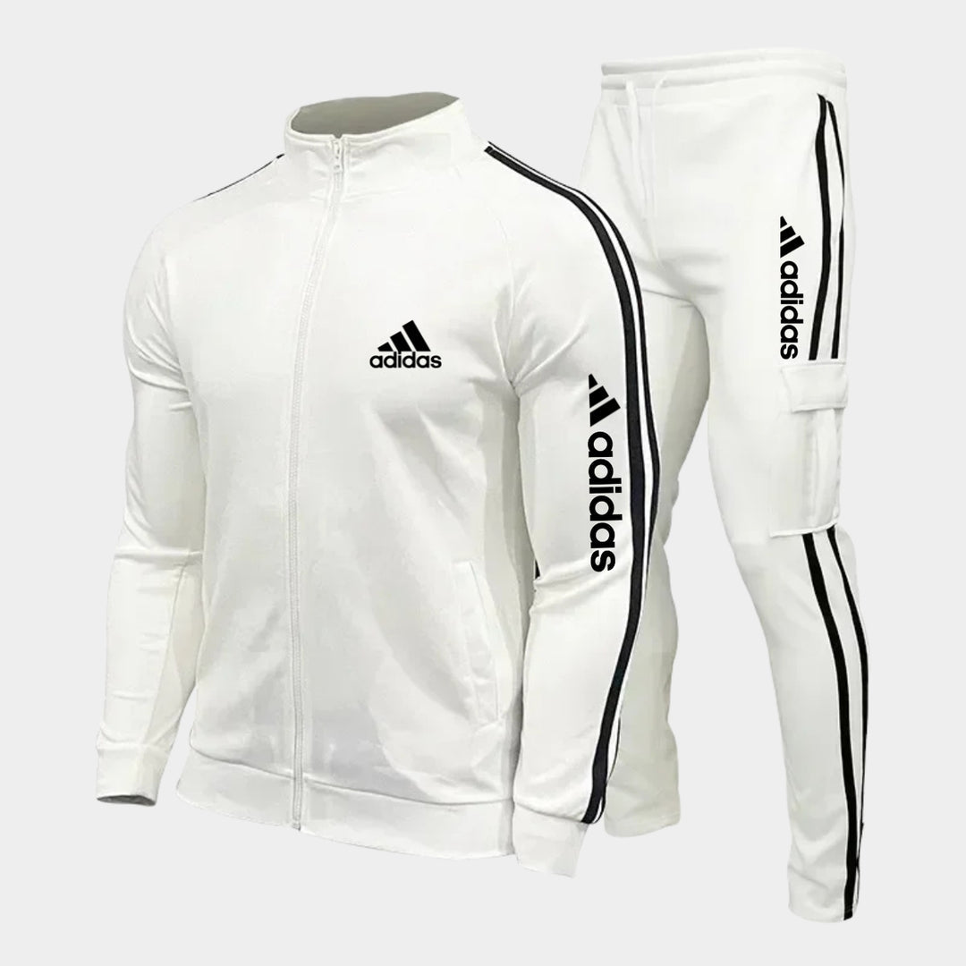 Affichez un style sportif intemporel avec cet ensemble deux pièces aux bandes classiques. Idéal pour l’entraînement ou un look urbain décontracté.