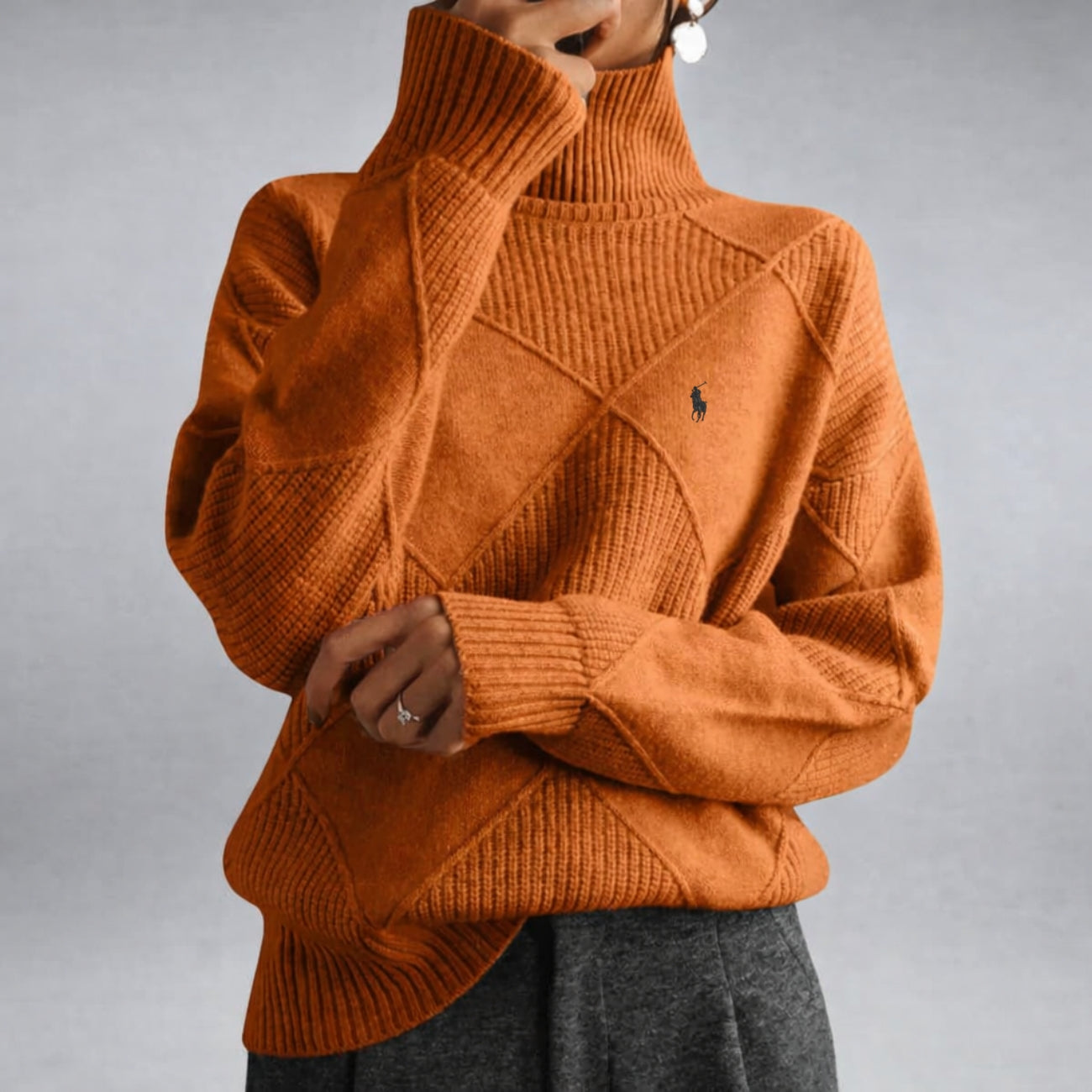 Un col roulé en maille texturée qui apporte une touche élégante tout en offrant une sensation de chaleur confortable pour un usage quotidien.